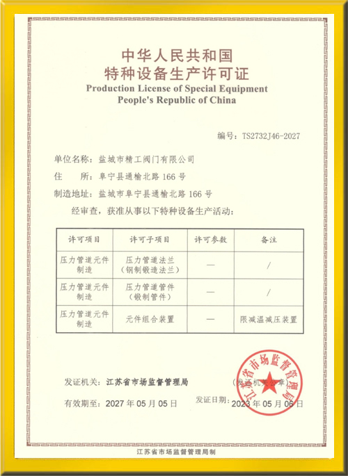 減溫減壓許可證書