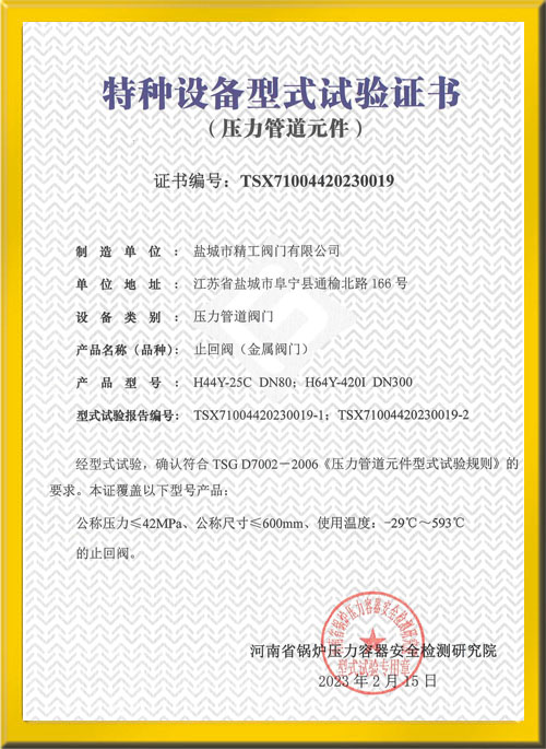 止回閥型式試驗證書