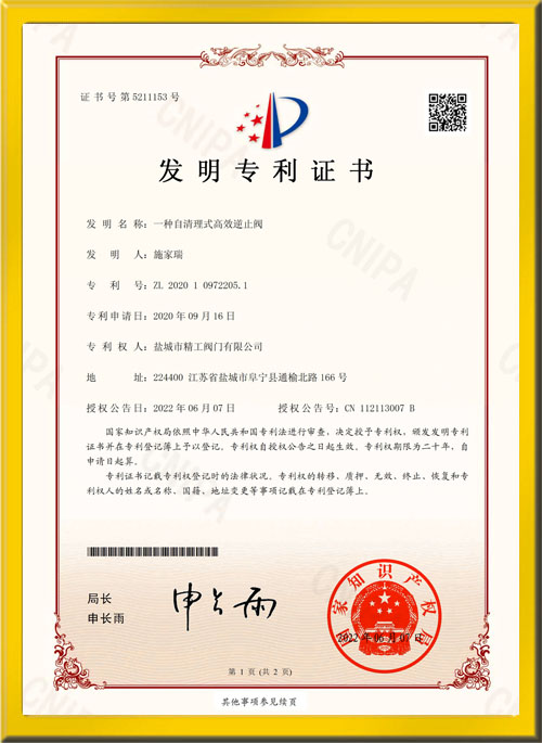 一種自清理式高效逆止閥